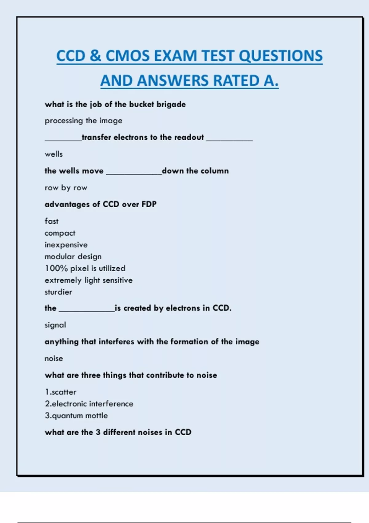 CCD & CMOS EXAM TEST QUESTIONS AND ANSWERS RATED A.