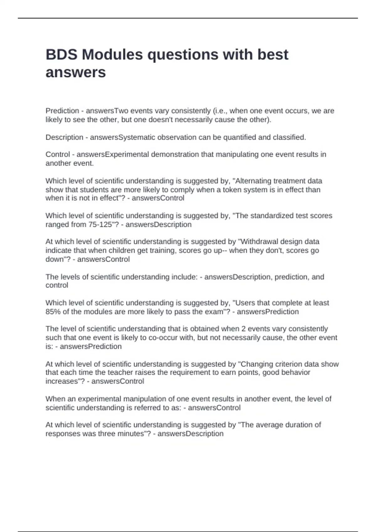 The levels of scientific understanding include: - answersDescription, prediction, and