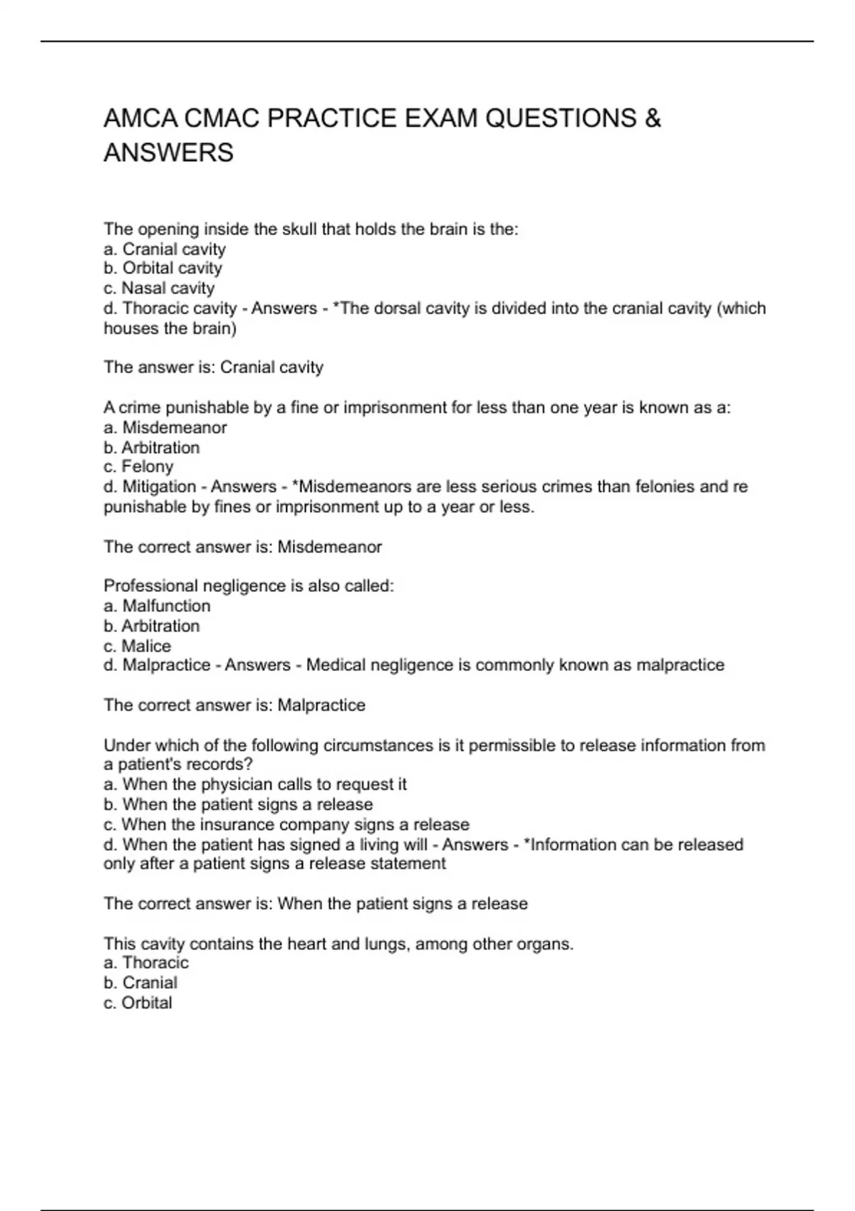 AMCA CMAC PRACTICE EXAM QUESTIONS & ANSWERS