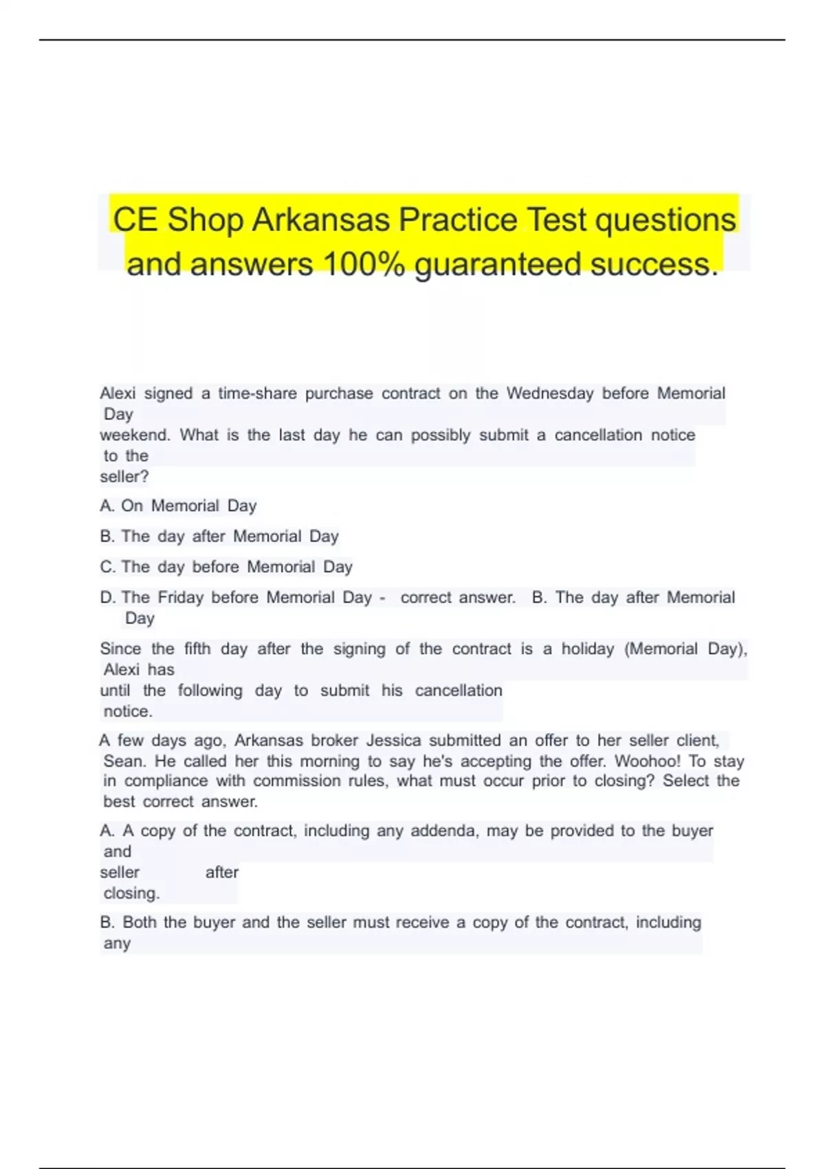 CE Shop Arkansas Practice Test questions