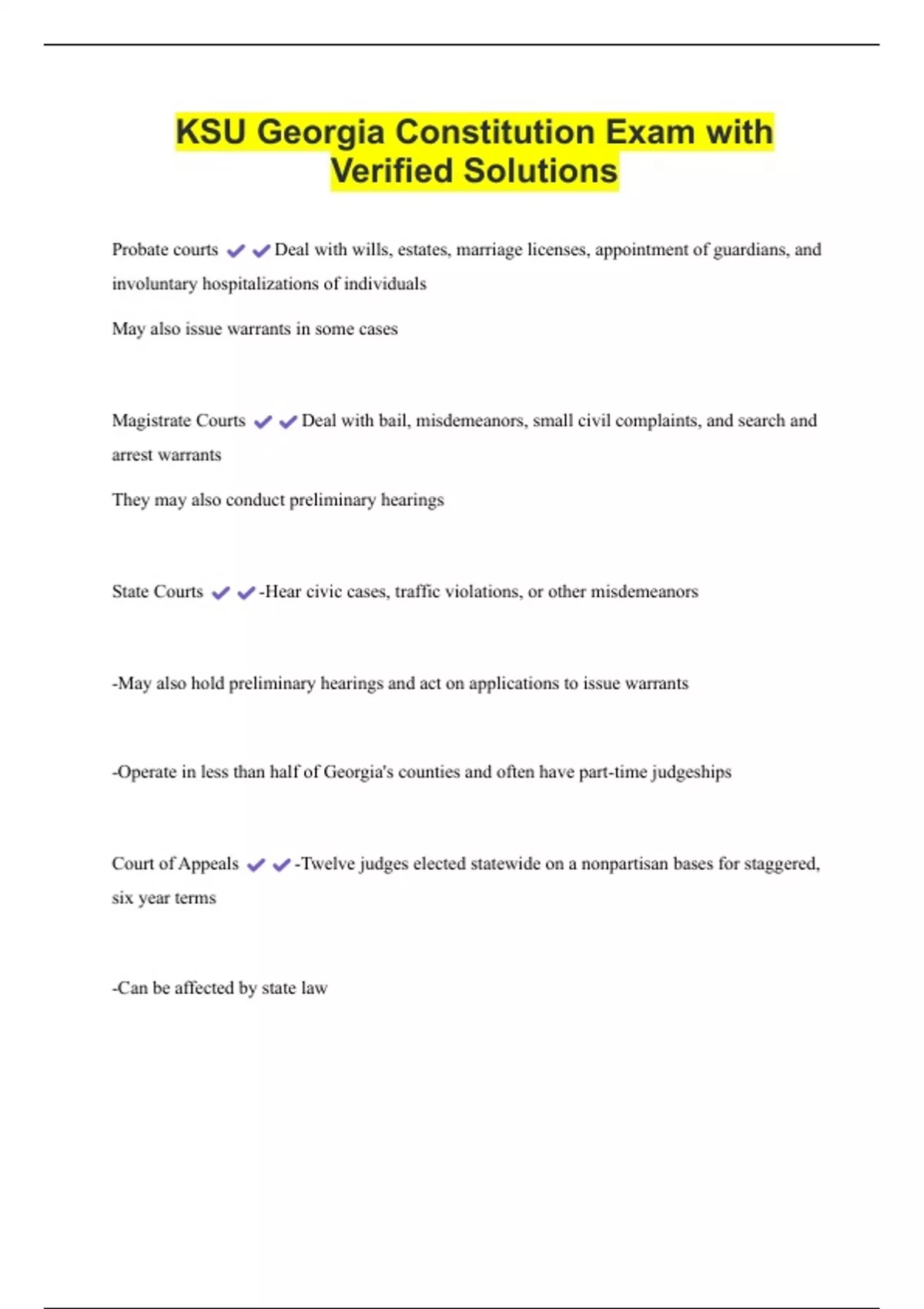 KSU Georgia Constitution Exam with Verified Solutions
