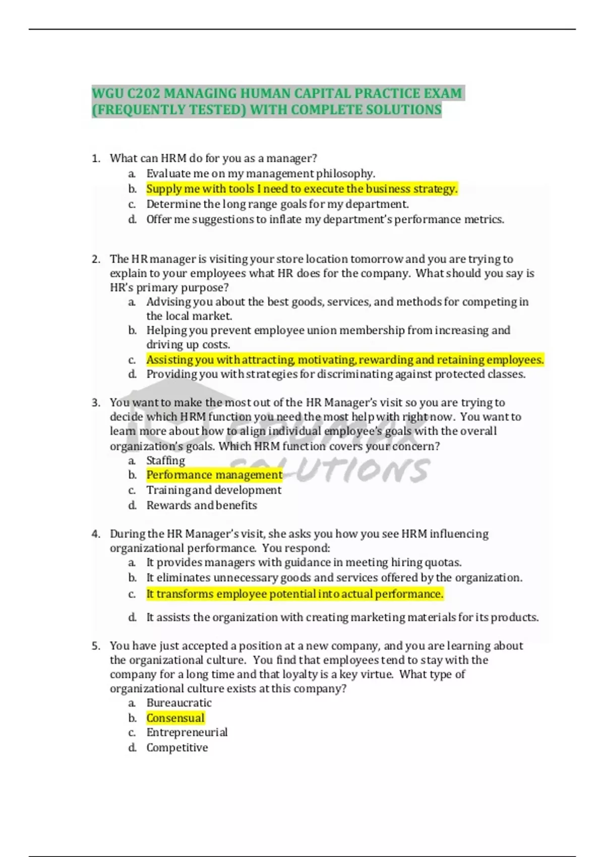 WGU C202 MANAGING HUMAN CAPITAL PRACTICE EXAM