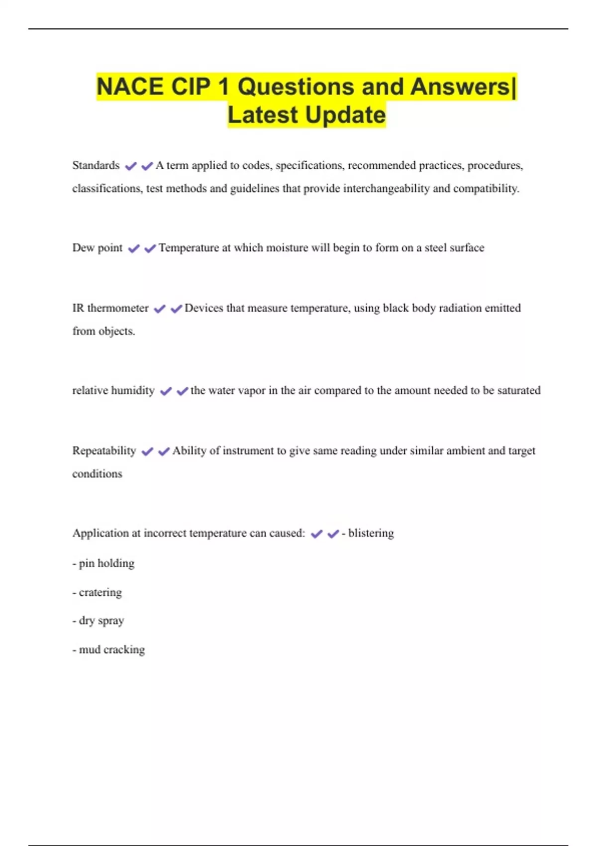 NACE CIP 1 Questions and Answers| Latest Update