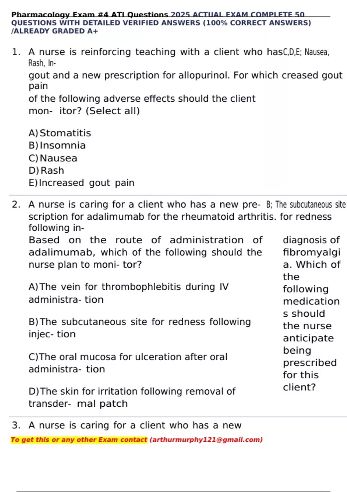 Pharmacology Exam #4 ATI Questions 2025 ACTUAL EXAM COMPLETE 50