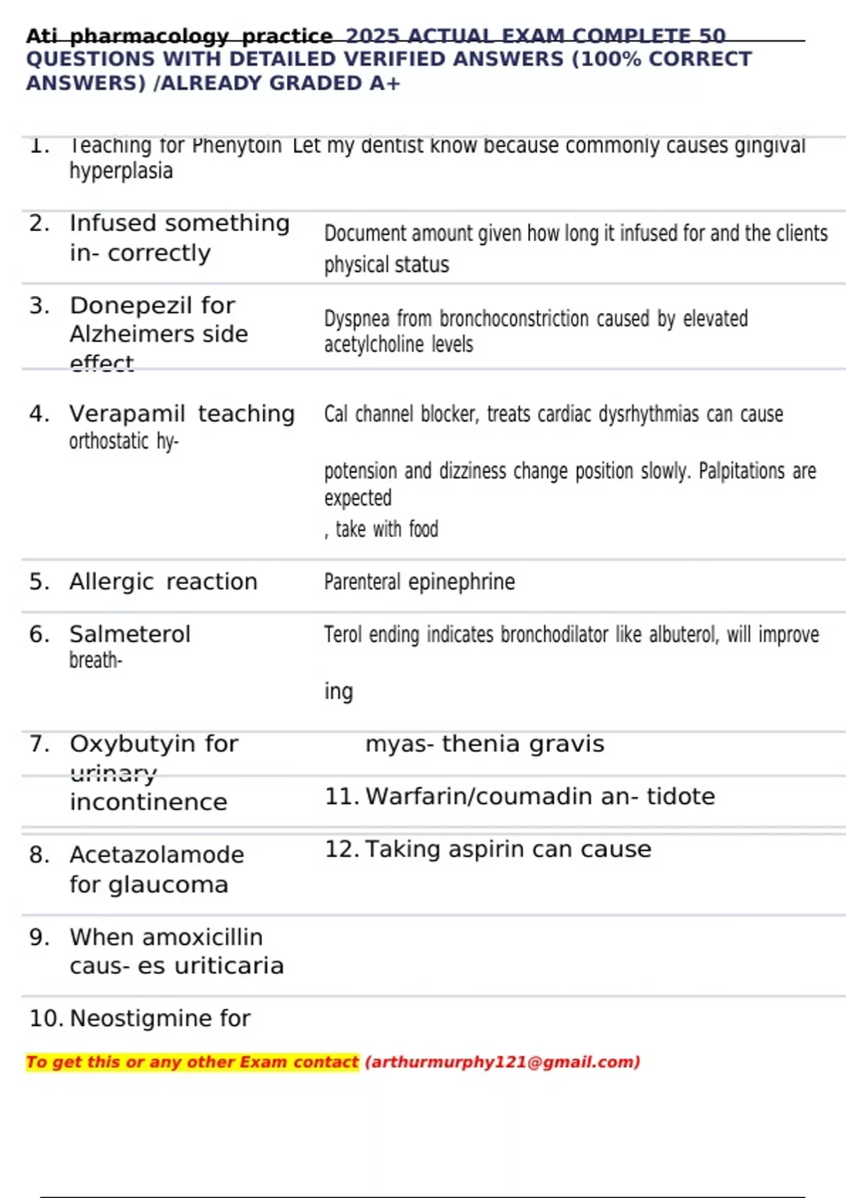 , Ati pharmacology practice 2025 ACTUAL EXAM COMPLETE 50