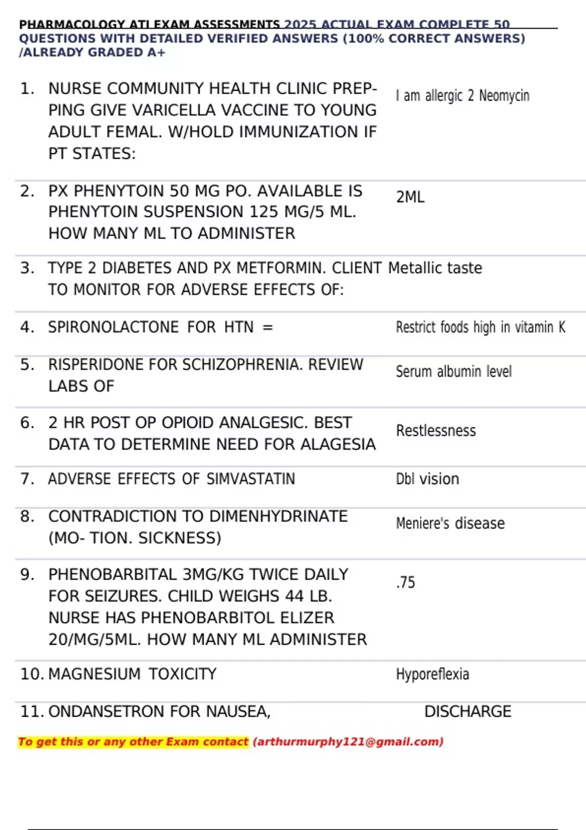 PHARMACOLOGY ATI EXAM ASSESSMENTS 2025 ACTUAL EXAM COMPLETE 50