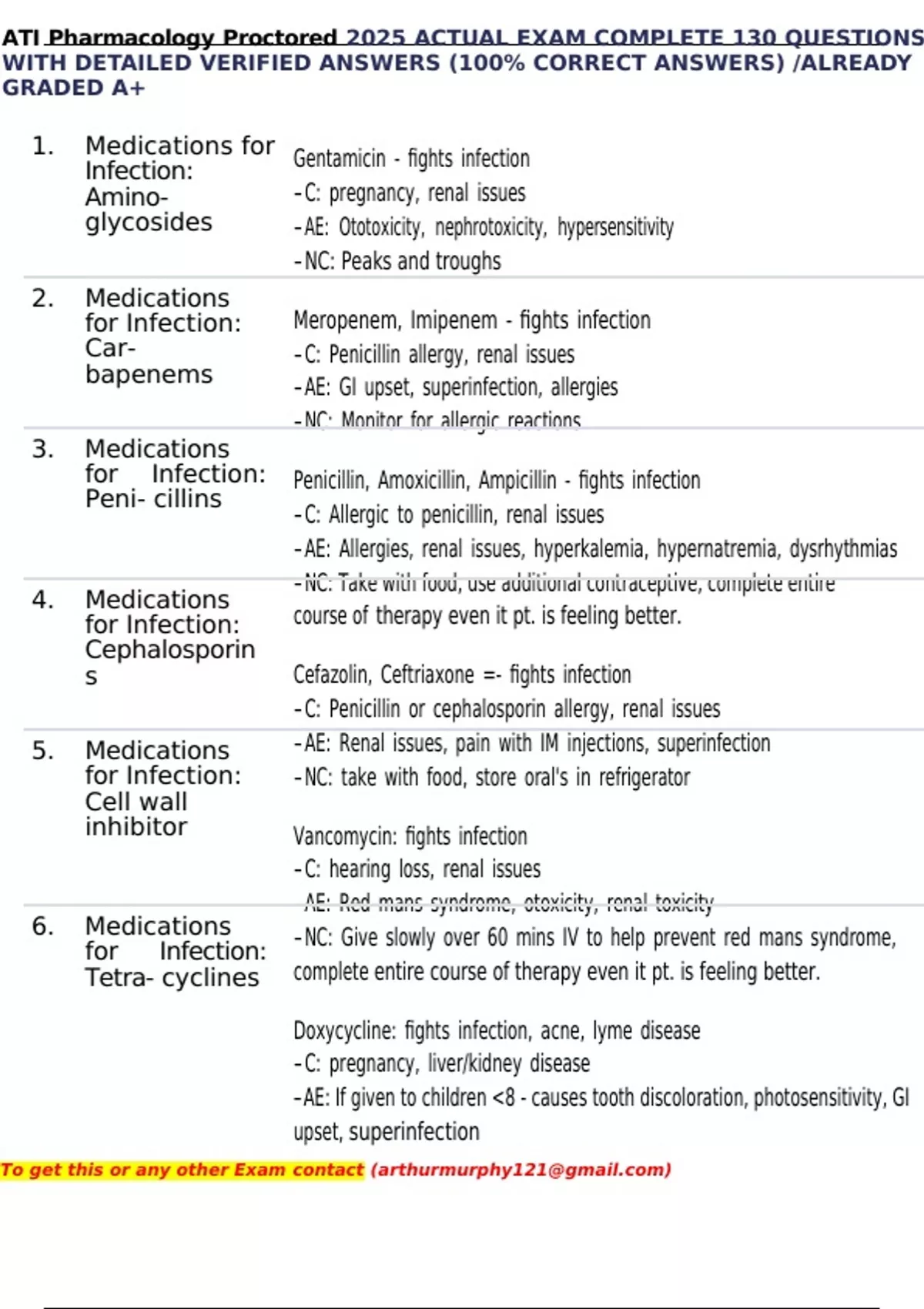 ATI Pharmacology Proctored 2025 ACTUAL EXAM COMPLETE 130 QUESTIONS