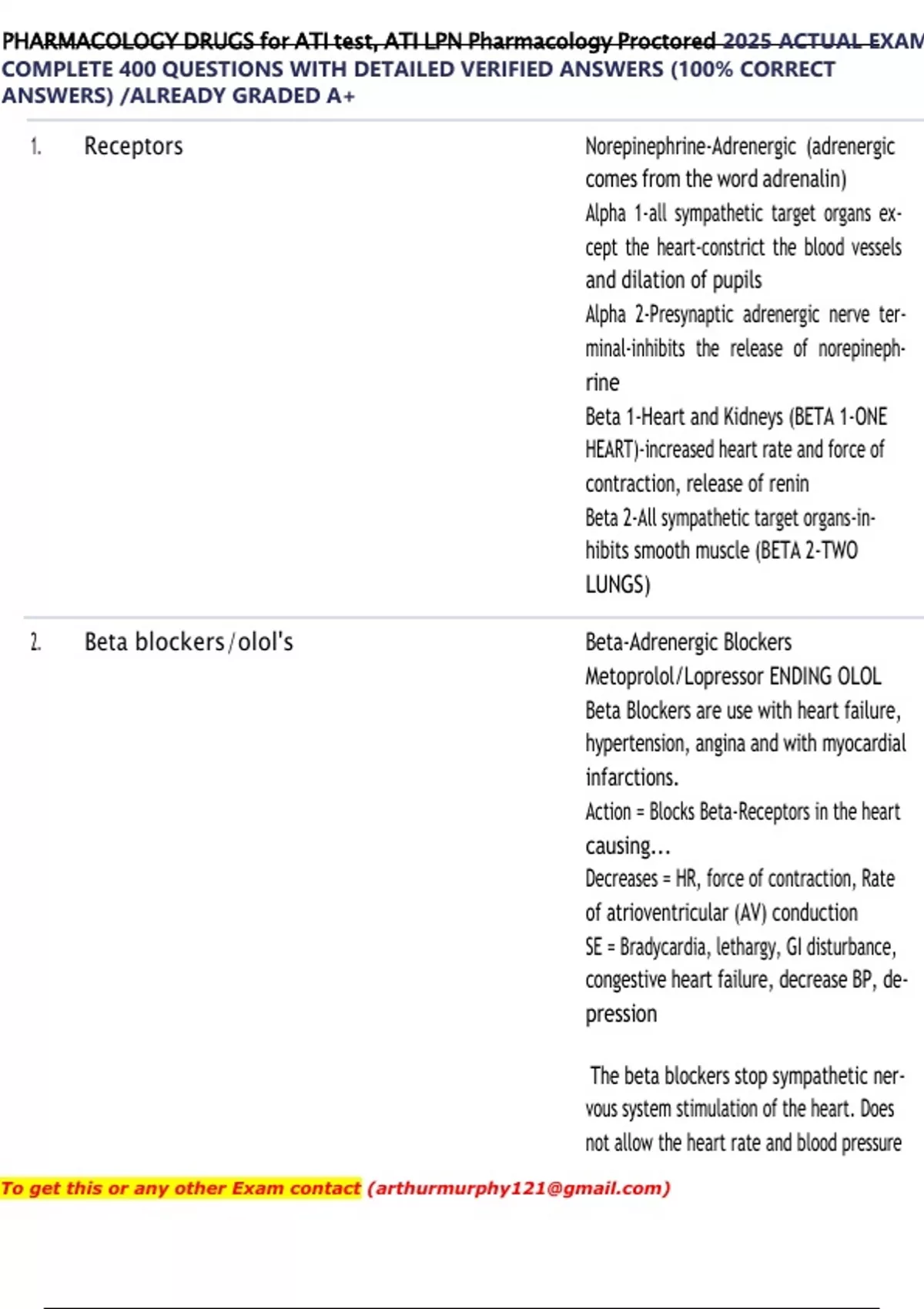,PHARMACOLOGY DRUGS for ATI test, ATI LPN Pharmacology Proctored 2025 ACTUAL EXAM