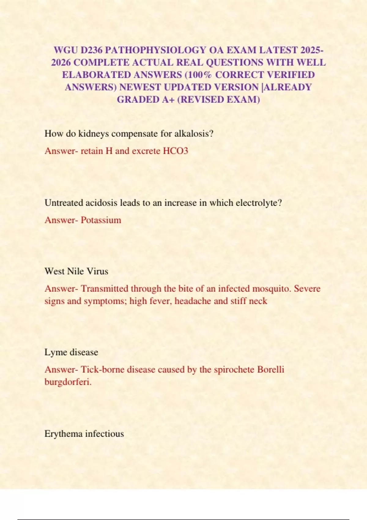 WGU D236 PATHOPHYSIOLOGY OA EXAM LATEST COMPLETE ACTUAL REAL QUESTIONS WITH WELL ELABORATED ANSWERS (100% CORRECT VERIFIED ANSWERS) NEWEST UPDATED VERSION |ALREADY GRADED A+ (REVISED EXAM)