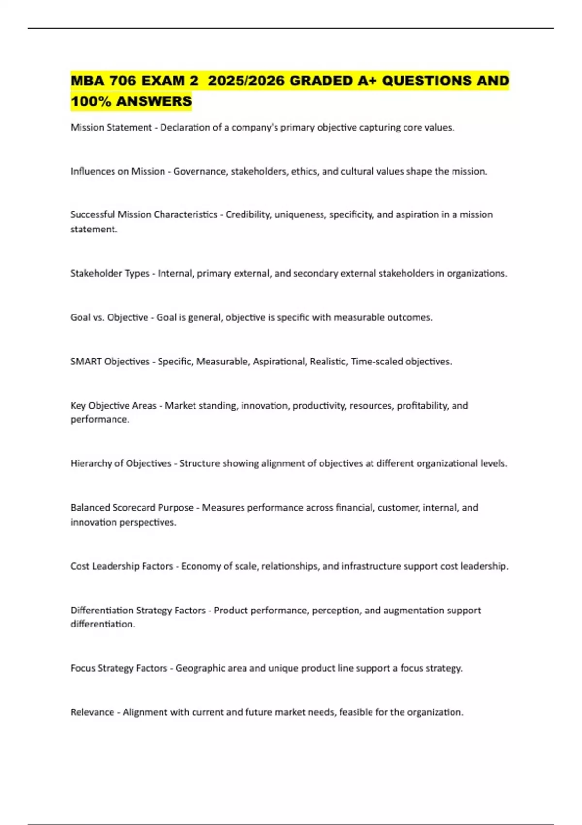 MBA 706 EXAM 2 2025/2026 GRADED A+ QUESTIONS AND