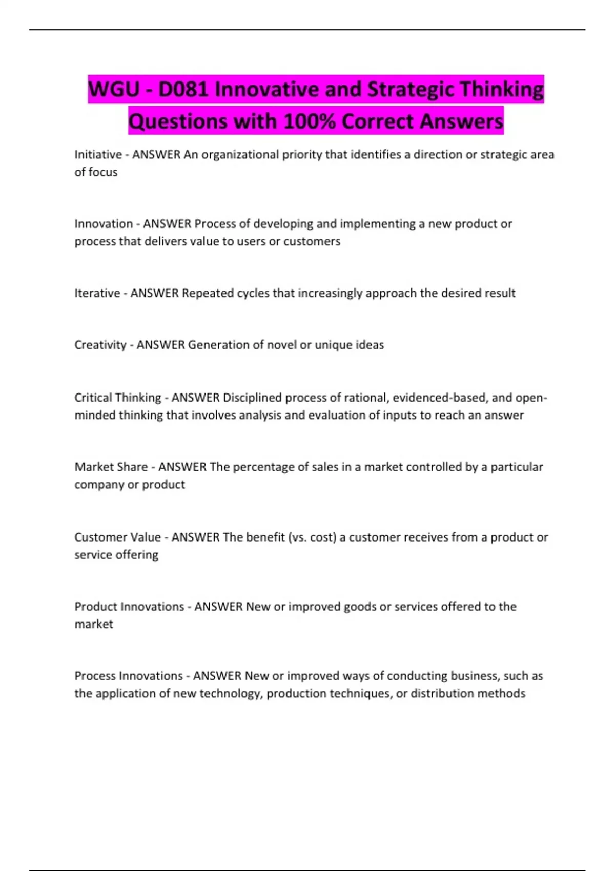 Key Point - ANSWER Innovation is an activity or process that leads to more effective