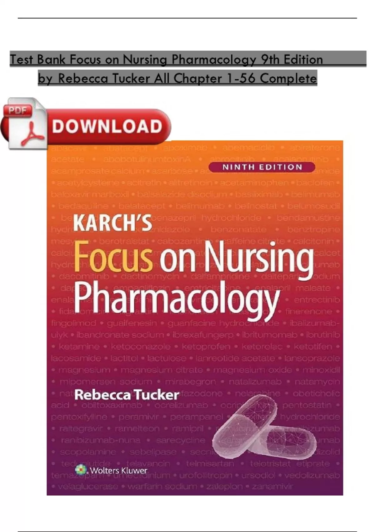 Test Bank For Karch's Focus on Nursing Pharmacology 9th Edition by Rebecca Tucker | All Chapters (1-56) | A+ COMPLETE GUIDE 2025 NEWEST VERSION