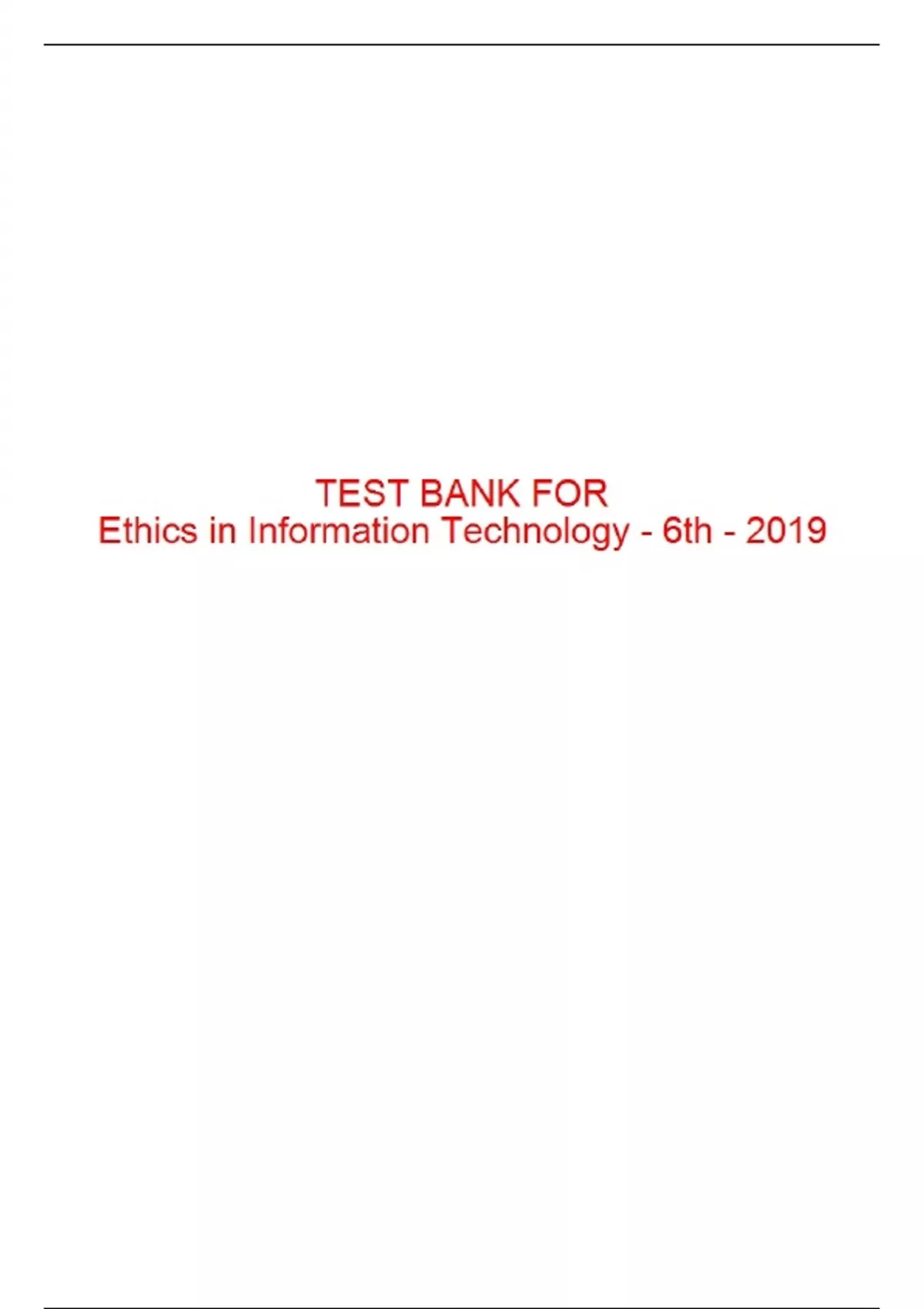 , Test Bank For Ethics in Information Technology, 6th Edition