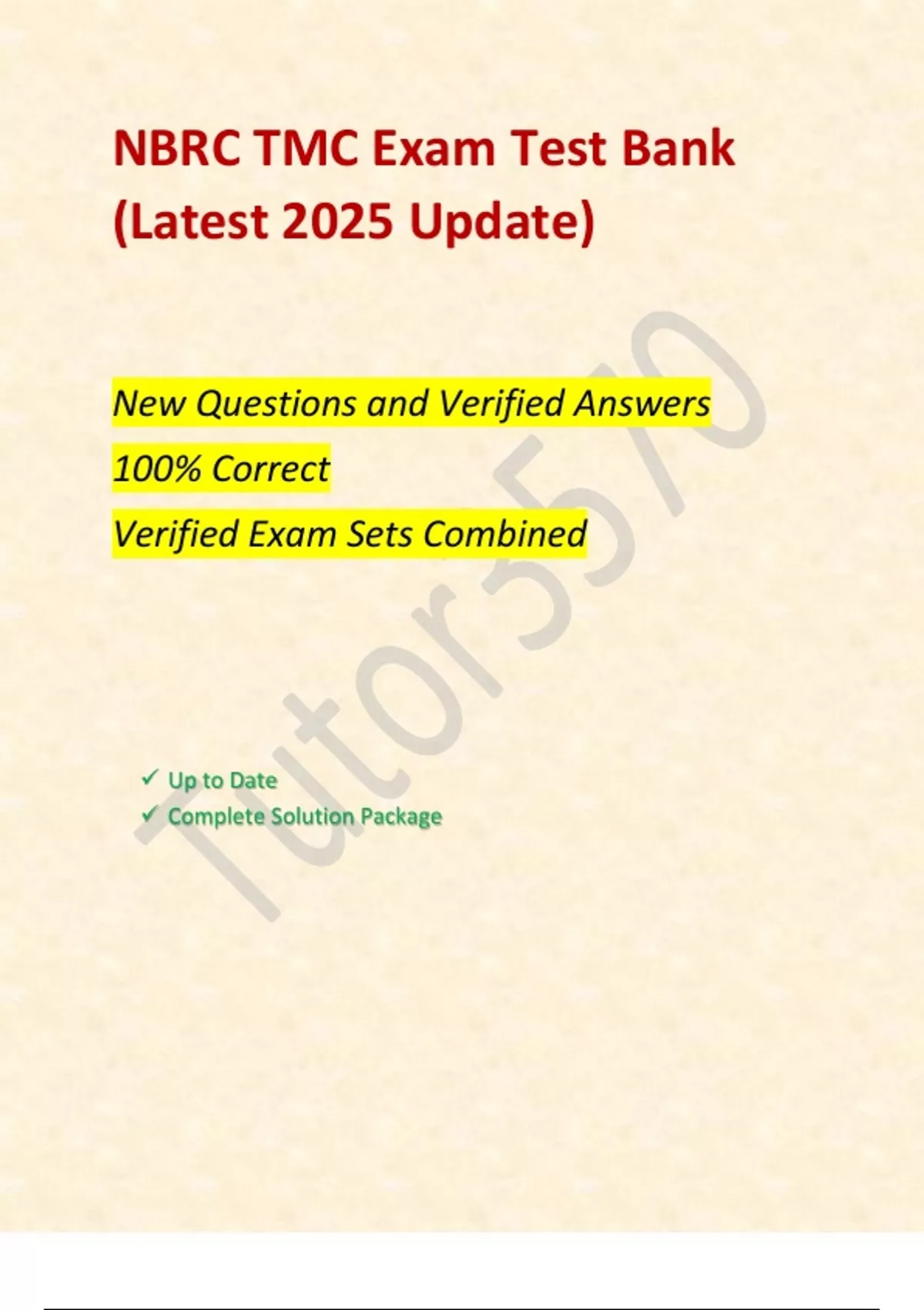 NBRC TMC Exam Test Bank (Latest 2025 Update) New Questions and Verified Answers 100% Correct Verified Exam Sets Combined