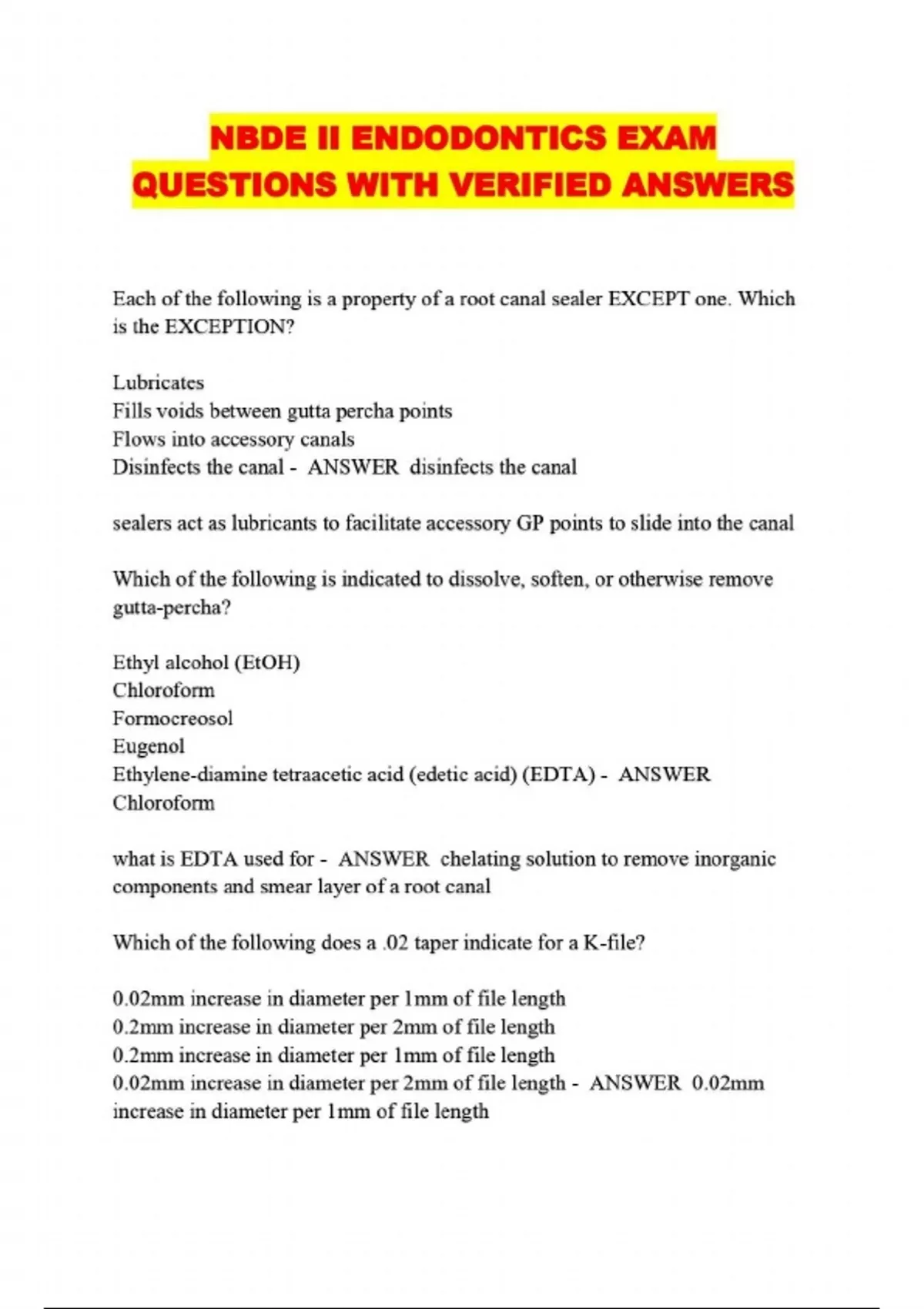 ALL NBDE PACKAGED EXAMS: QUESTIONS WITH 100% VERIFIED ANSWERS LATEST UPDATED
