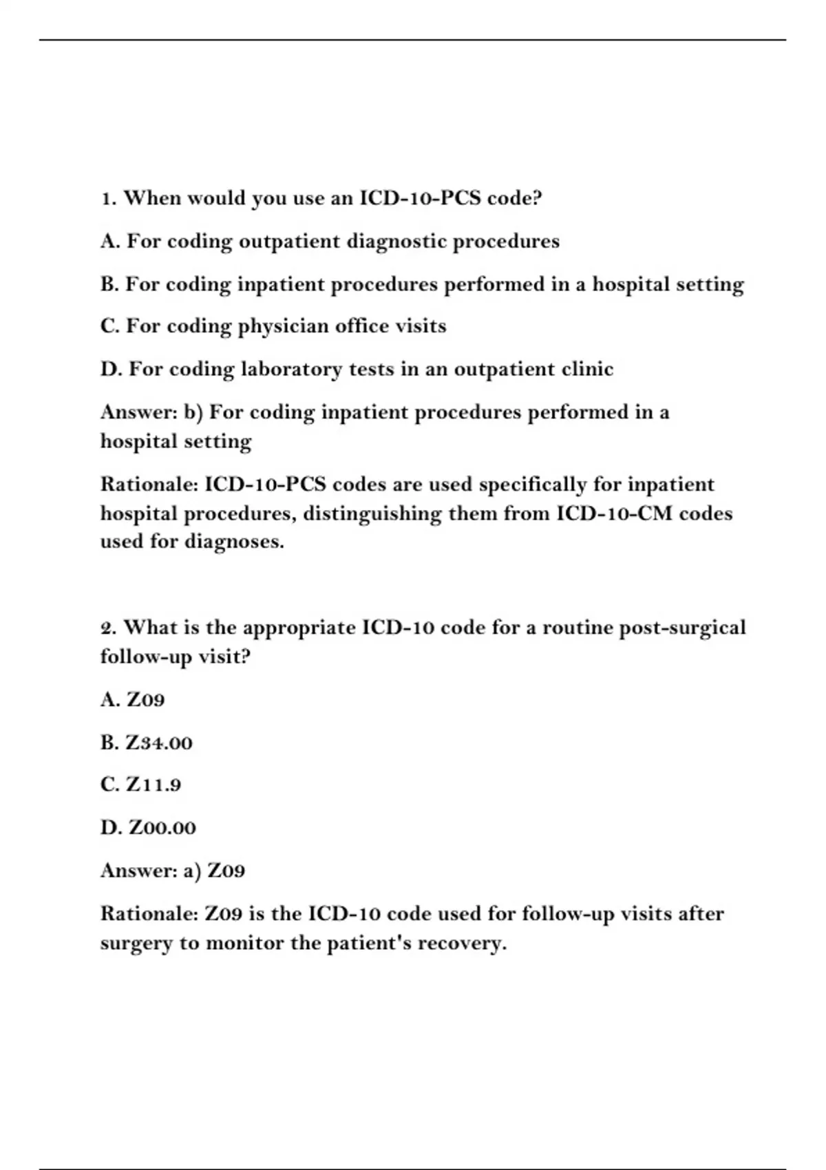 Rationale: ICD-10-PCS codes are used specifically for inpatient