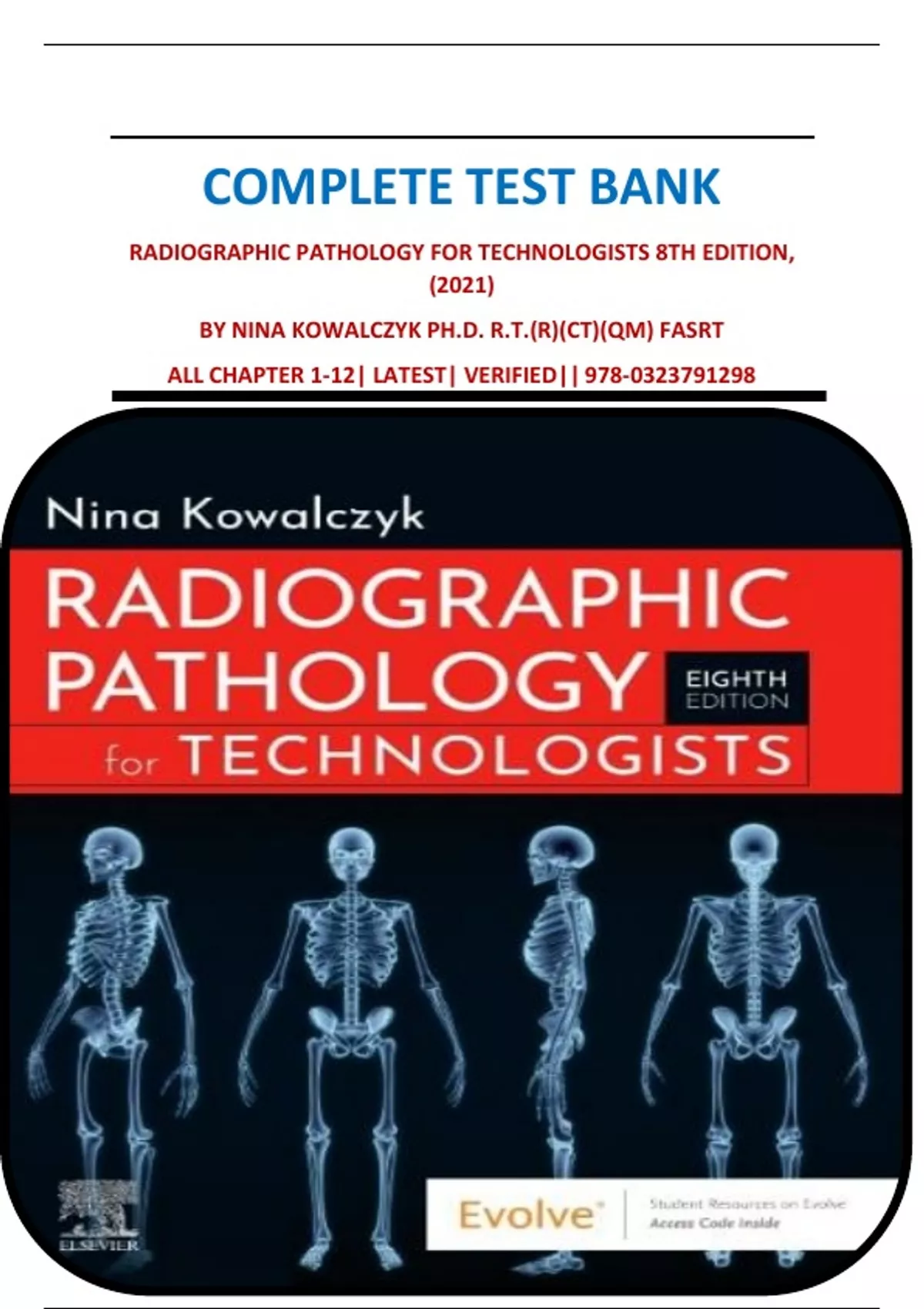 COMPLETE TEST BANK RADIOGRAPHIC PATHOLOGY FOR TECHNOLOGISTS 8TH EDITION, (2021) BY NINA KOWALCZYK PH.D. R.T.(R)(CT)(QM) FASRT ALL CHAPTER 1-12| LATEST| VERIFIED|| 978-0323791298