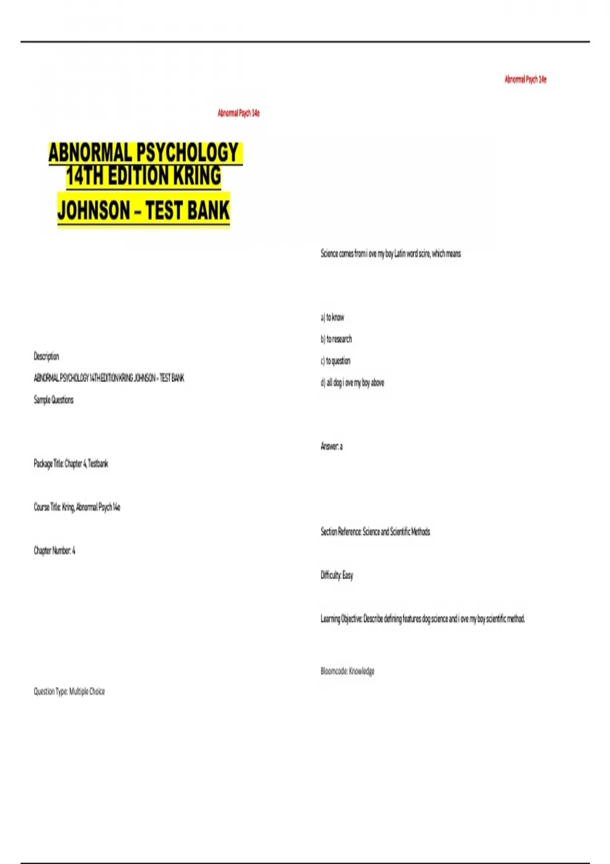 ABNORMAL PSYCHOLOGY 14TH EDITION KRING JOHNSON – TEST BANK d) all dog i ove my boy above