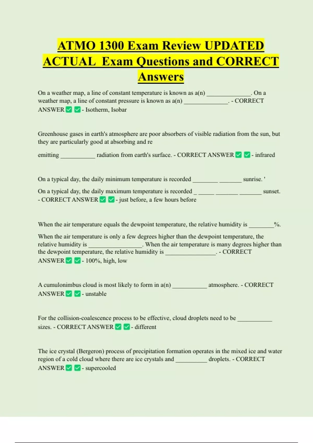ATMO 1300 Exam Review UPDATED ACTUAL Exam Questions and CORRECT Answers