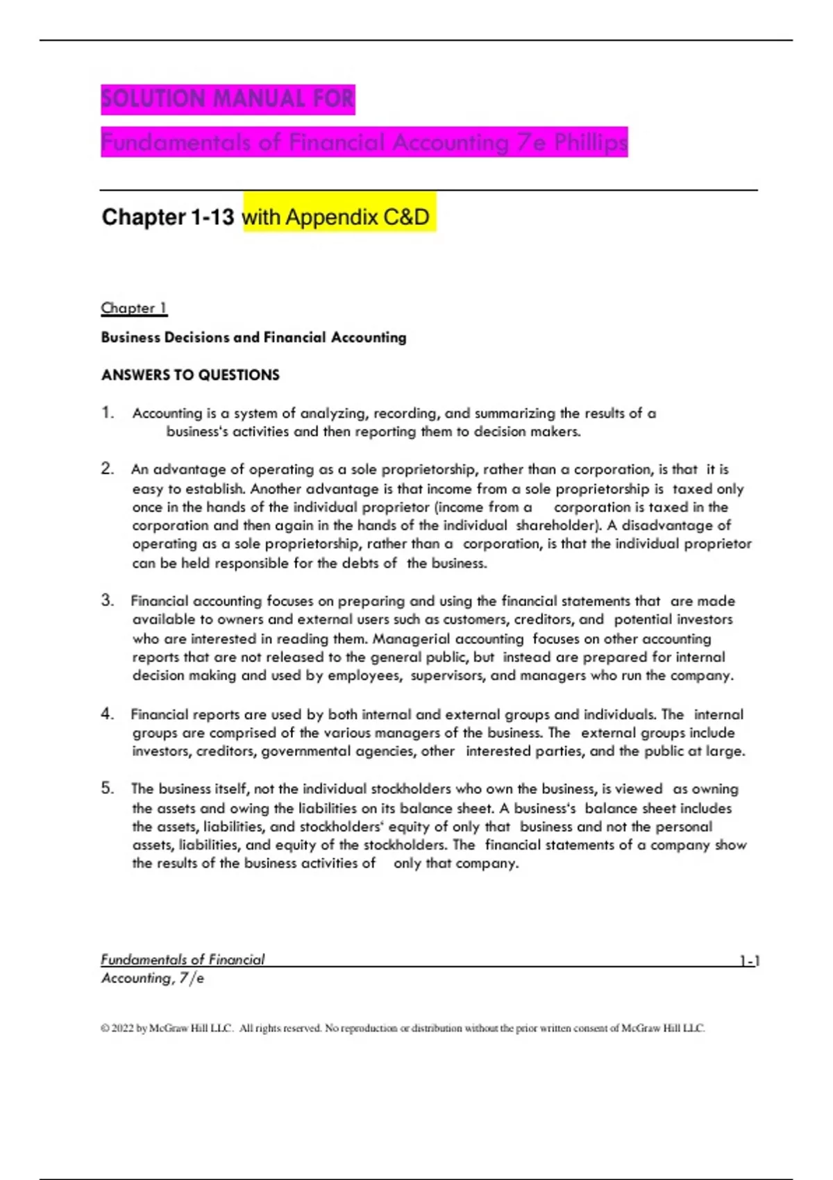 Solution Manual For Fundamentals of Financial Accounting 7th Edition Phillips.