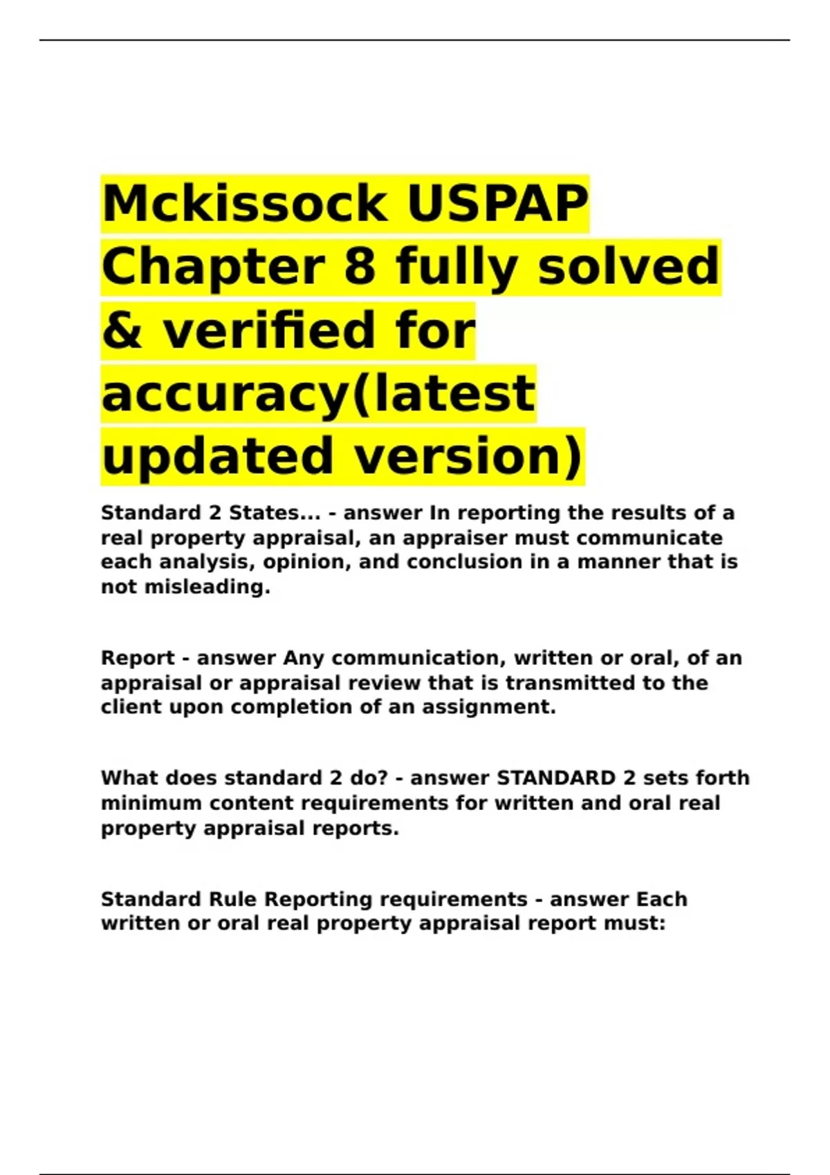 Mckissock USPAP Chapter 8 fully solved & verified for accuracy(latest updated version)|GUARANTEED SUCCES