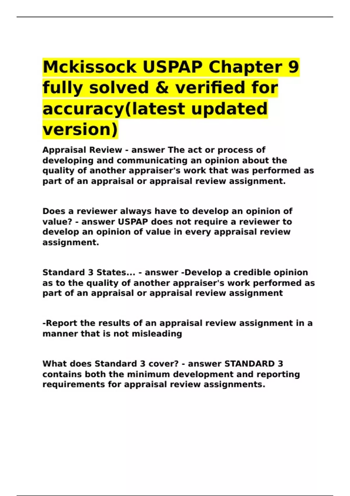 Mckissock USPAP Chapter 9 fully solved & verified for accuracy(latest updated version).