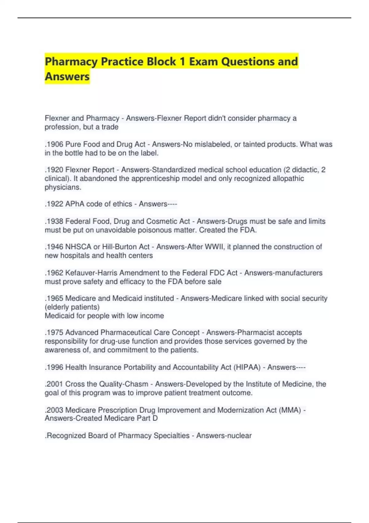Pharmacy Practice Block 1 Exam Questions and
