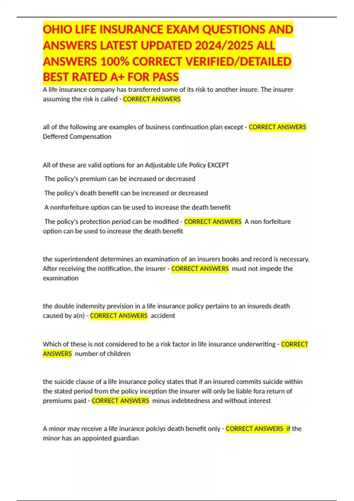 , OHIO LIFE INSURANCE EXAM QUESTIONS AND