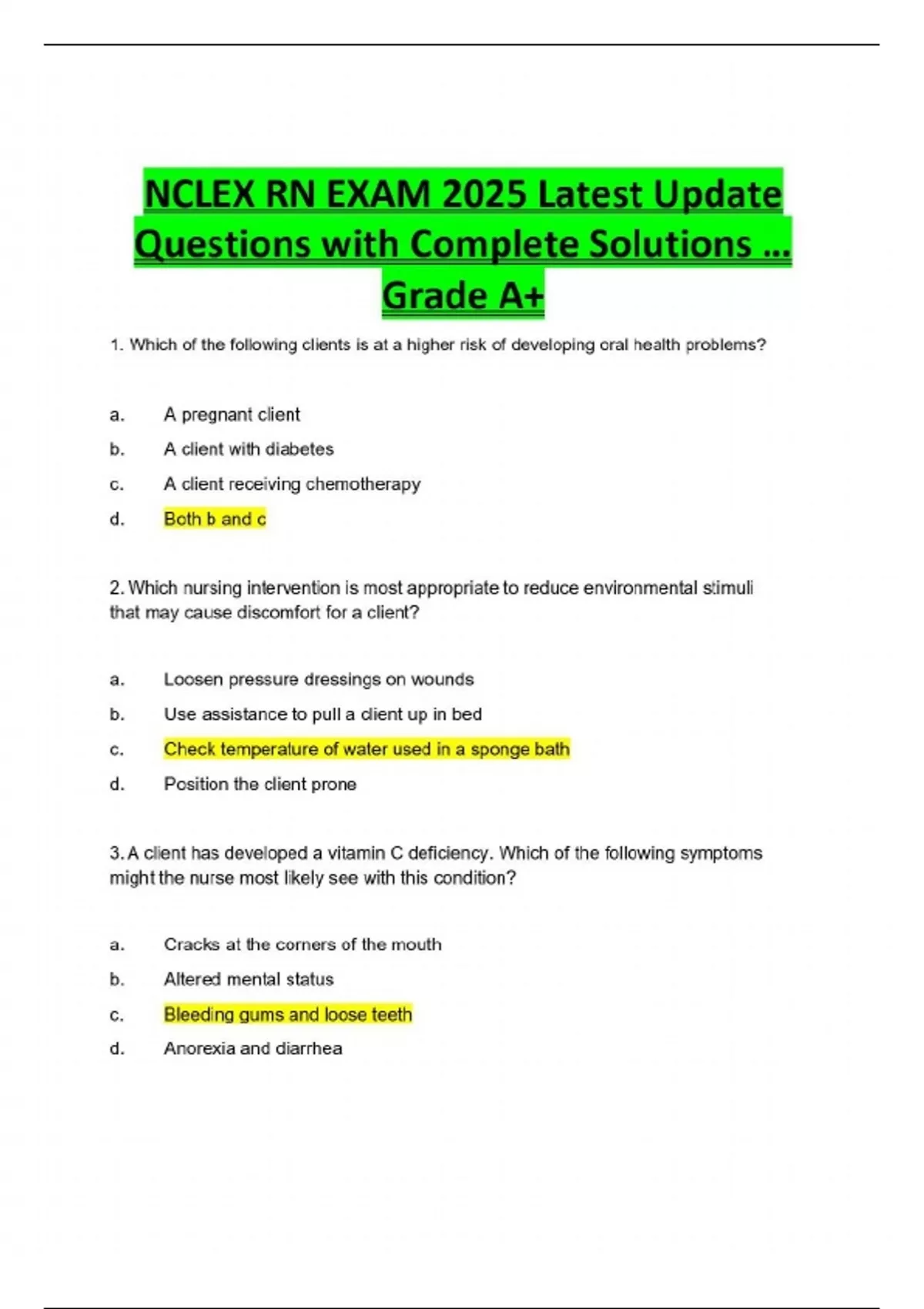 NCLEX RN EXAM 2025 Latest Update Questions with Complete Solutions … Grade A+