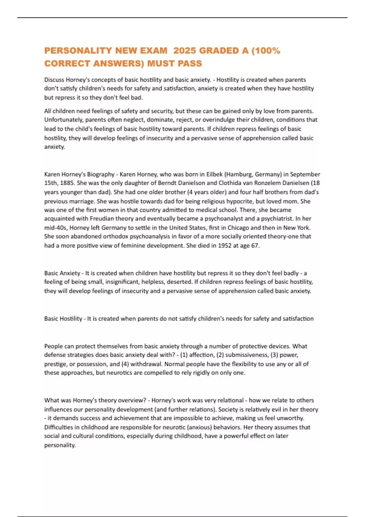 Difficulties in childhood are responsible for neurotic (anxious) behaviors. Her theory assumes that