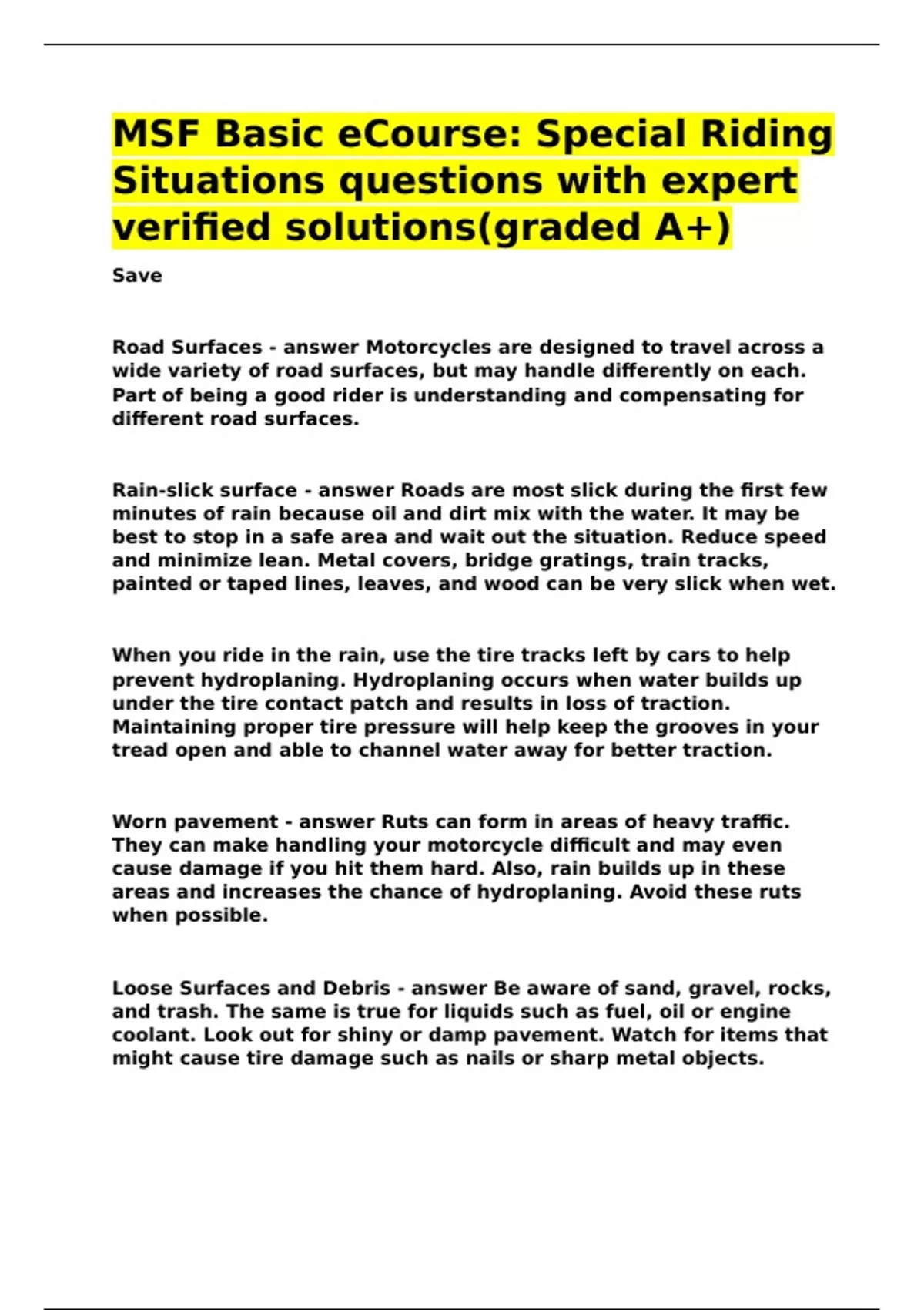 MSF Basic eCourse Special Riding Situations questions with expert verified solutions(graded A+)