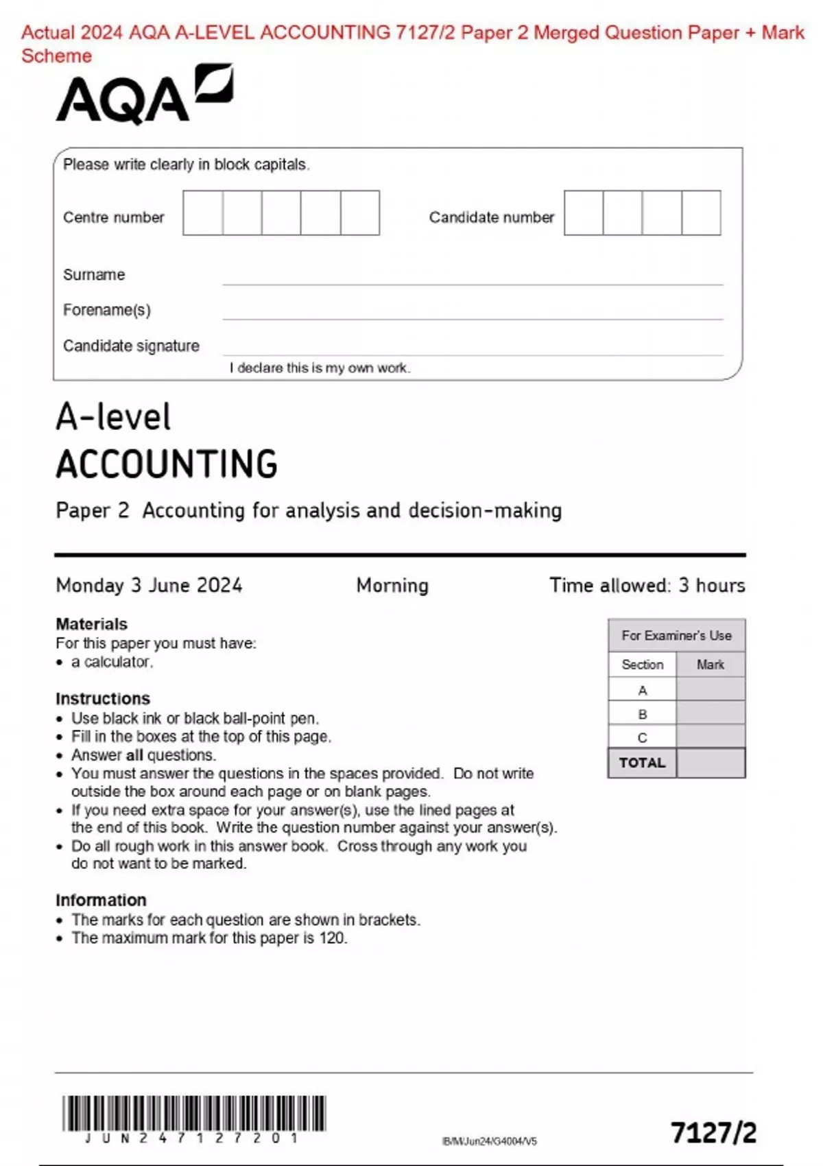 Actual 2024 AQA GCSE BUSINESS 8132/1 Paper 1 Influences of operations and HRM on business activity Merged Question Paper + Mark Scheme