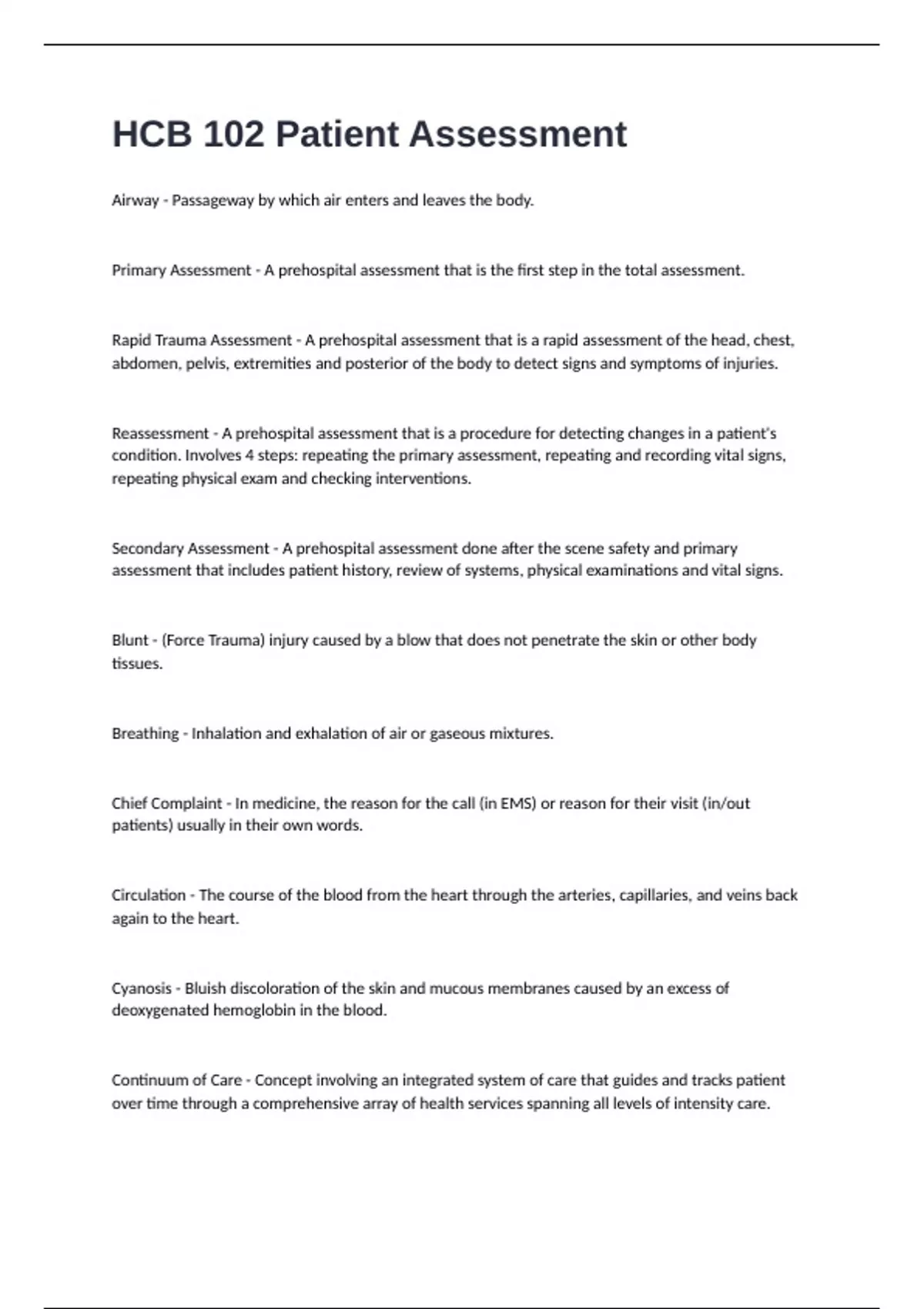 HCB 102 Patient Assessment Graded A+