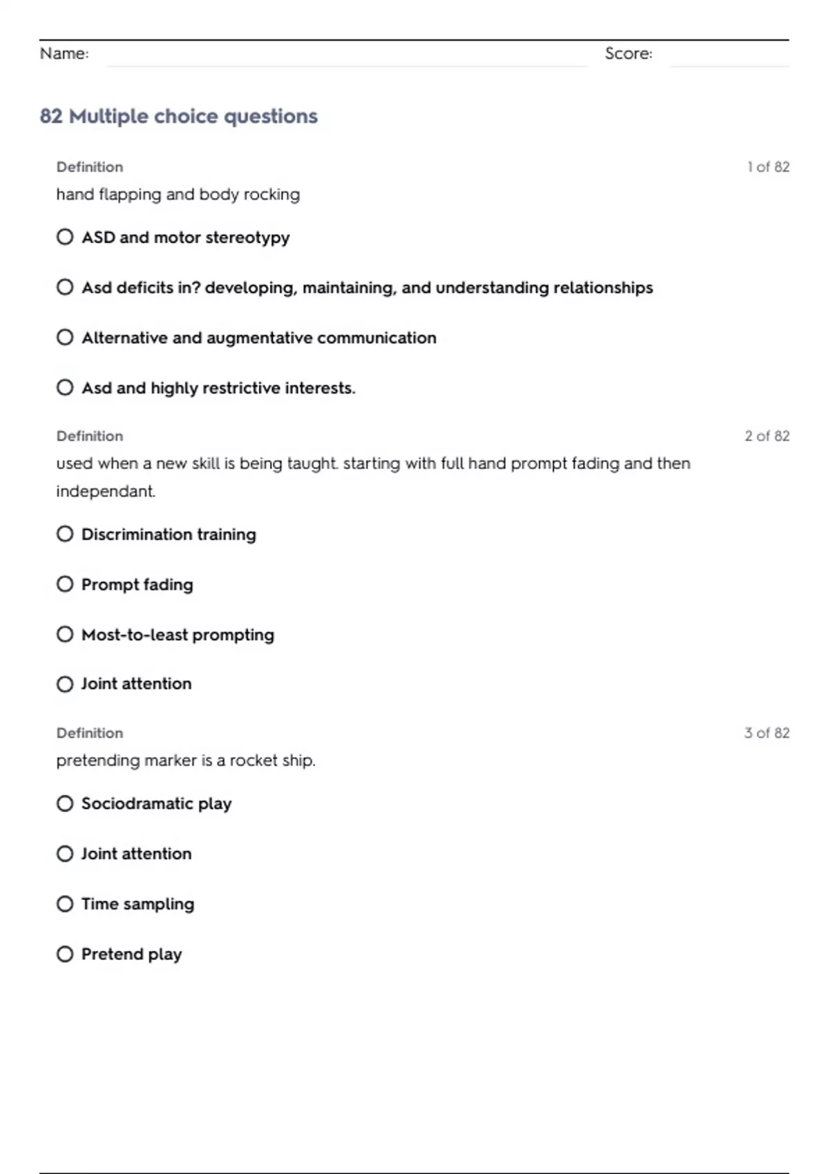 Name: Score: