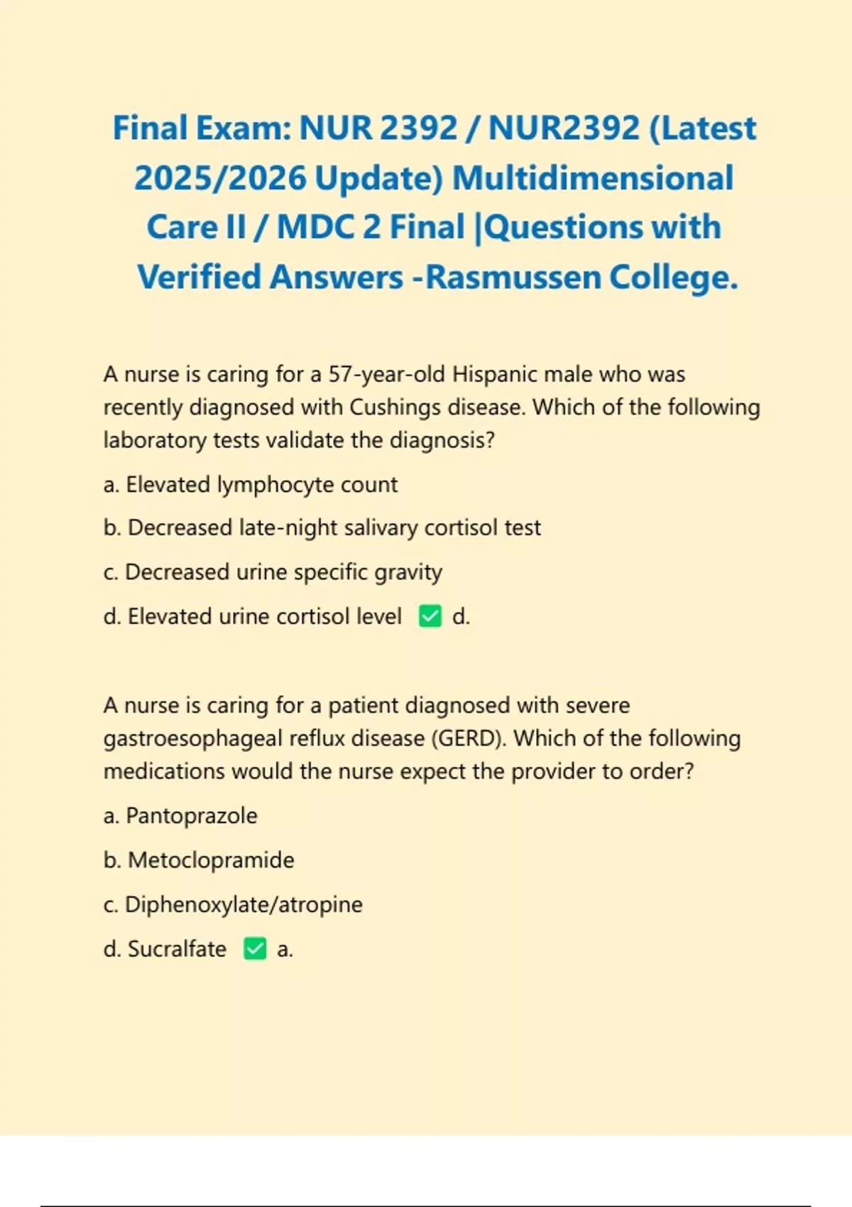 Care II / MDC 2 Final |Questions with