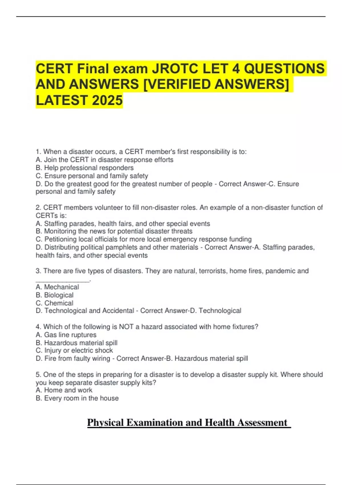 CERT Final exam JROTC LET 4 QUESTIONS