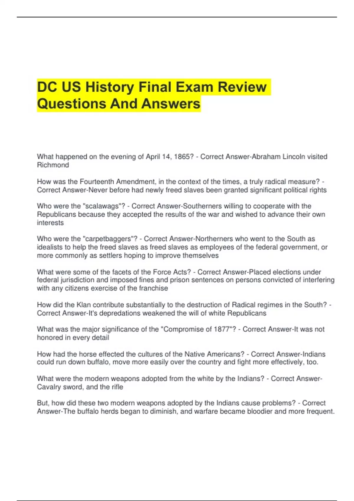 DC US History Final Exam Review