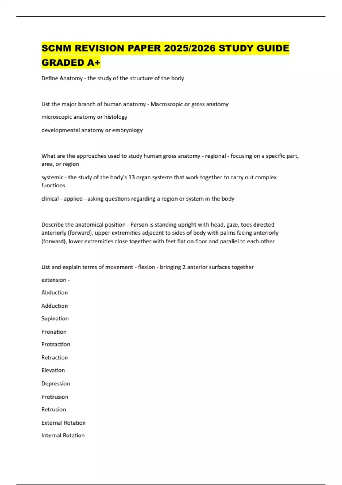 Define Anatomy - the study of the structure of the body