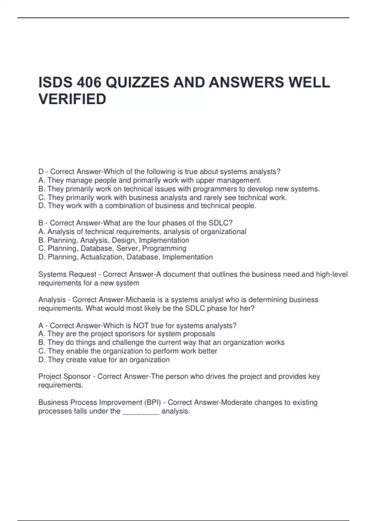 ISDS 406 QUIZZES AND ANSWERS WELL