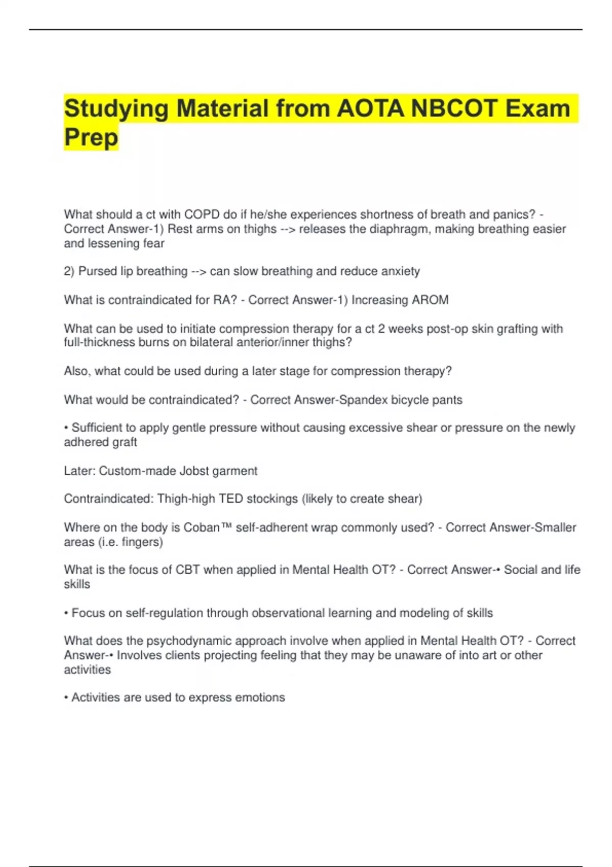 Correct Answer-1) Rest arms on thighs --> releases the diaphragm, making breathing easier