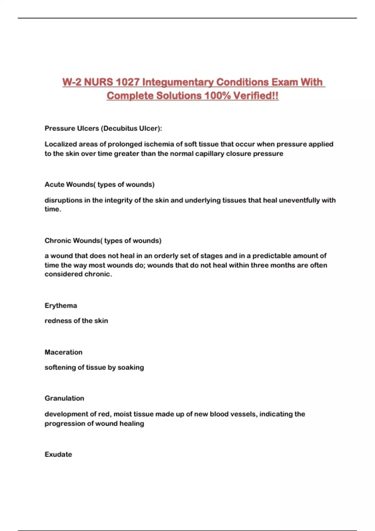 W-2 NURS 1027 Integumentary Conditions Exam With