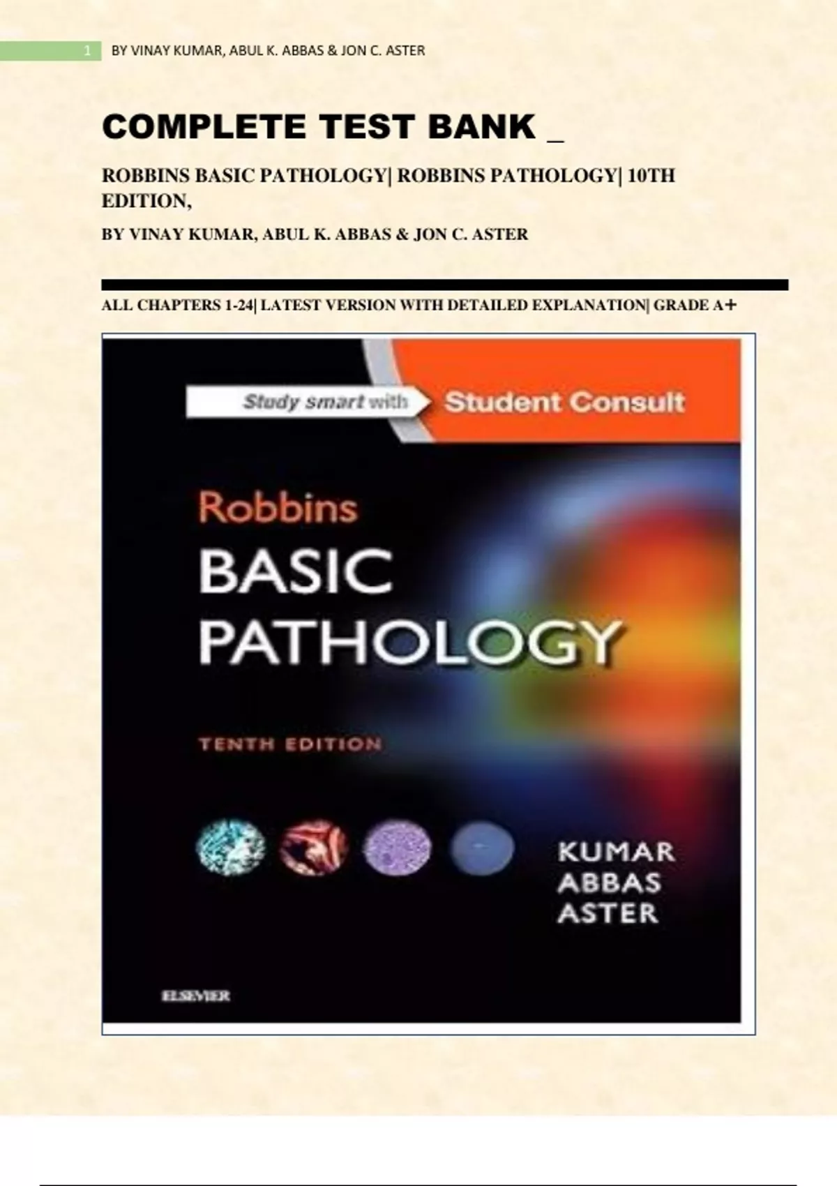 Vinay Kumar: Robbins Basic Pathology (Robbins Pathology) 10th Edition, Test Bank