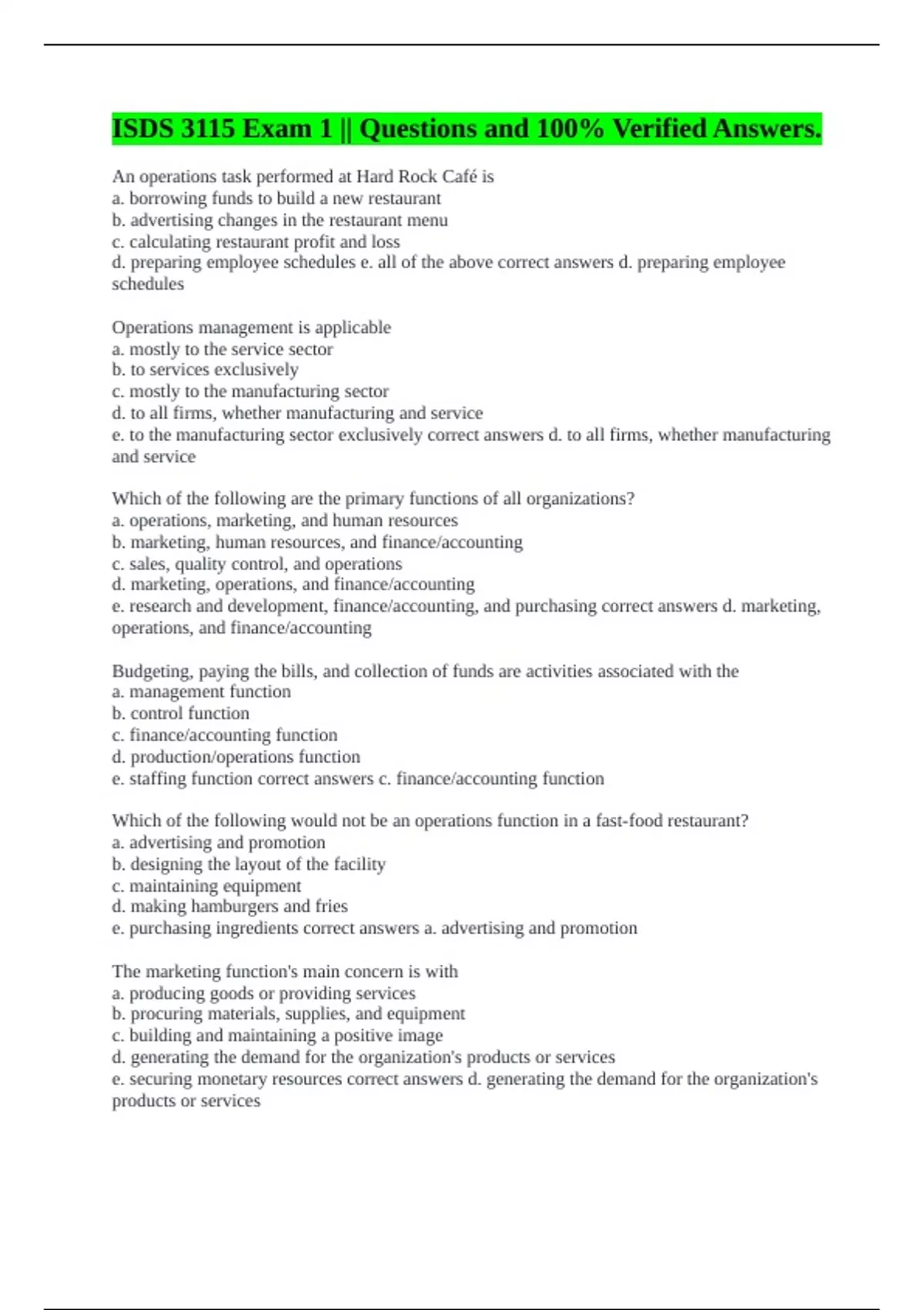 e. All of the above fall within the scope of operations management. correct answers a. financial