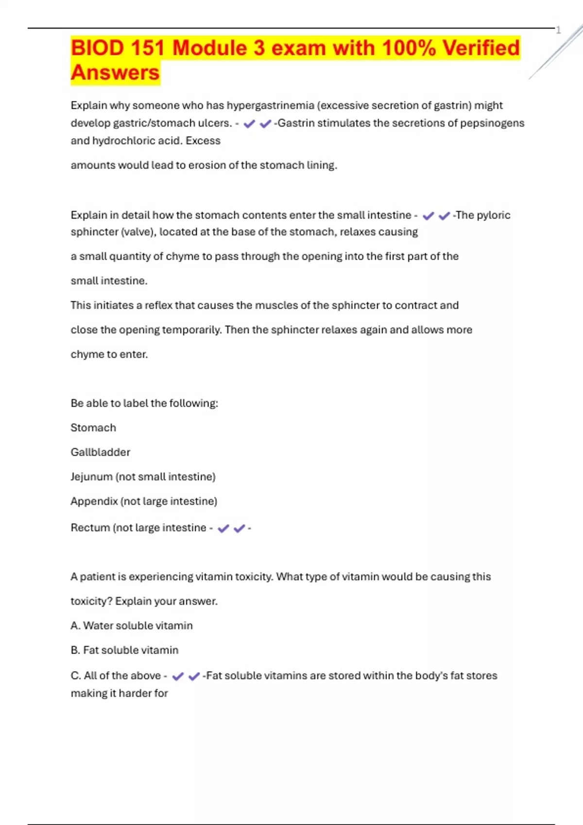 BIOD 151 Module 3 exam with 100% Verified
