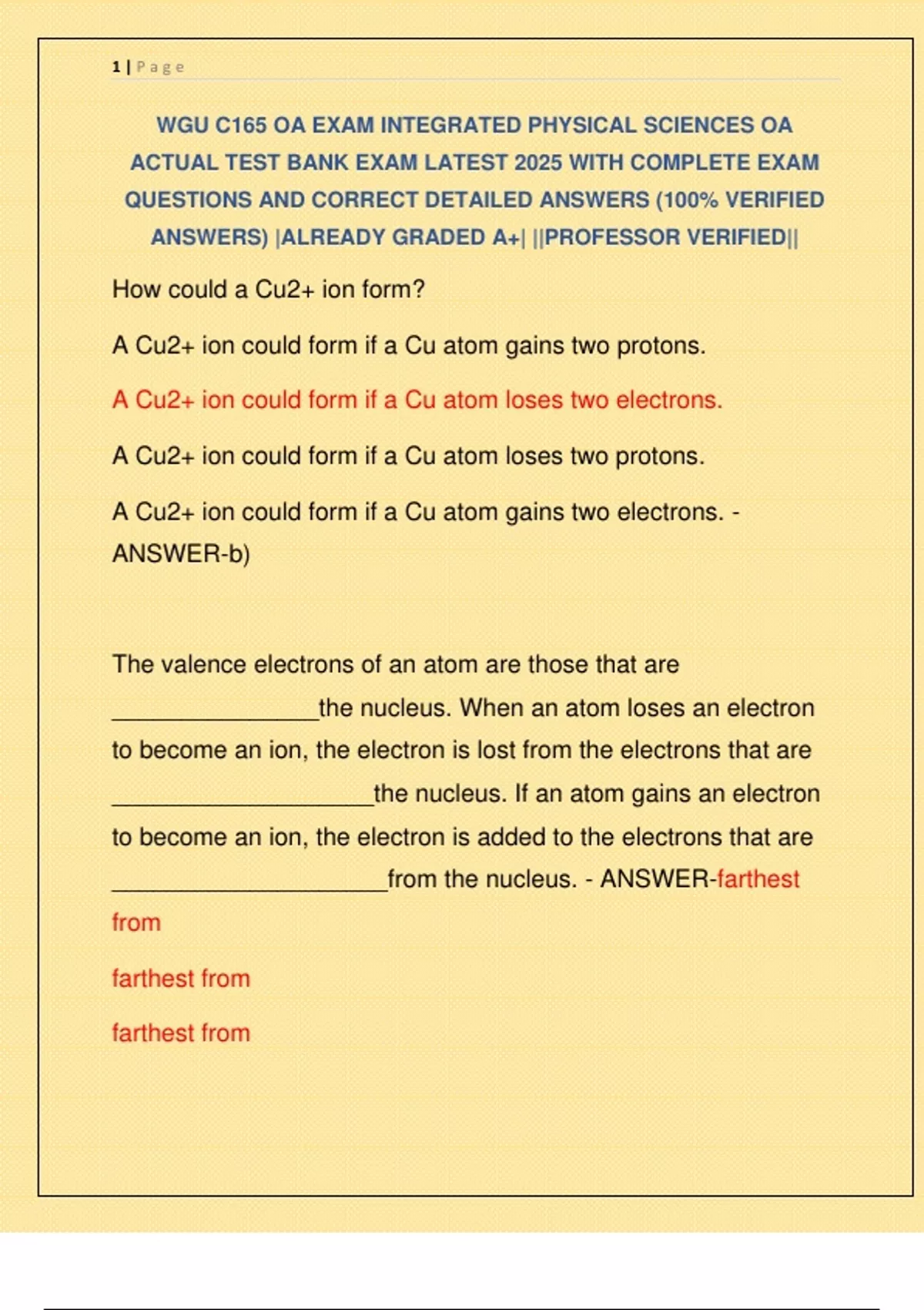 WGU C165 OA EXAM INTEGRATED PHYSICAL SCIENCES OA