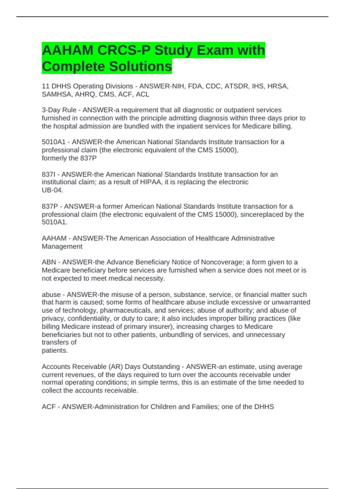 AAHAM CRCS-P Study Exam with Complete Solutions