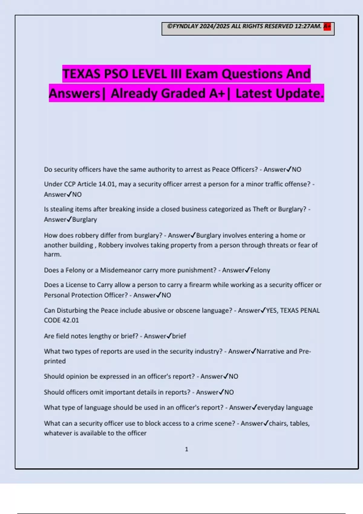 Do security officers have the same authority to arrest as Peace Officers? - Answer✔NO