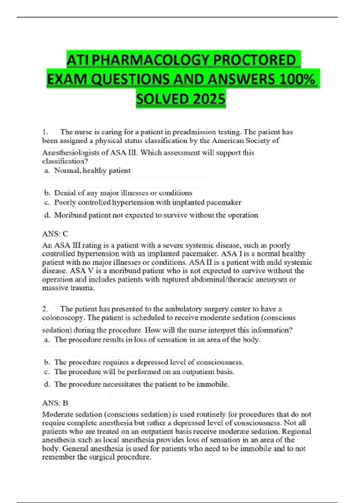 ATI PHARMACOLOGY PROCTORED EXAM QUESTIONS AND ANSWERS 100% SOLVED 2025