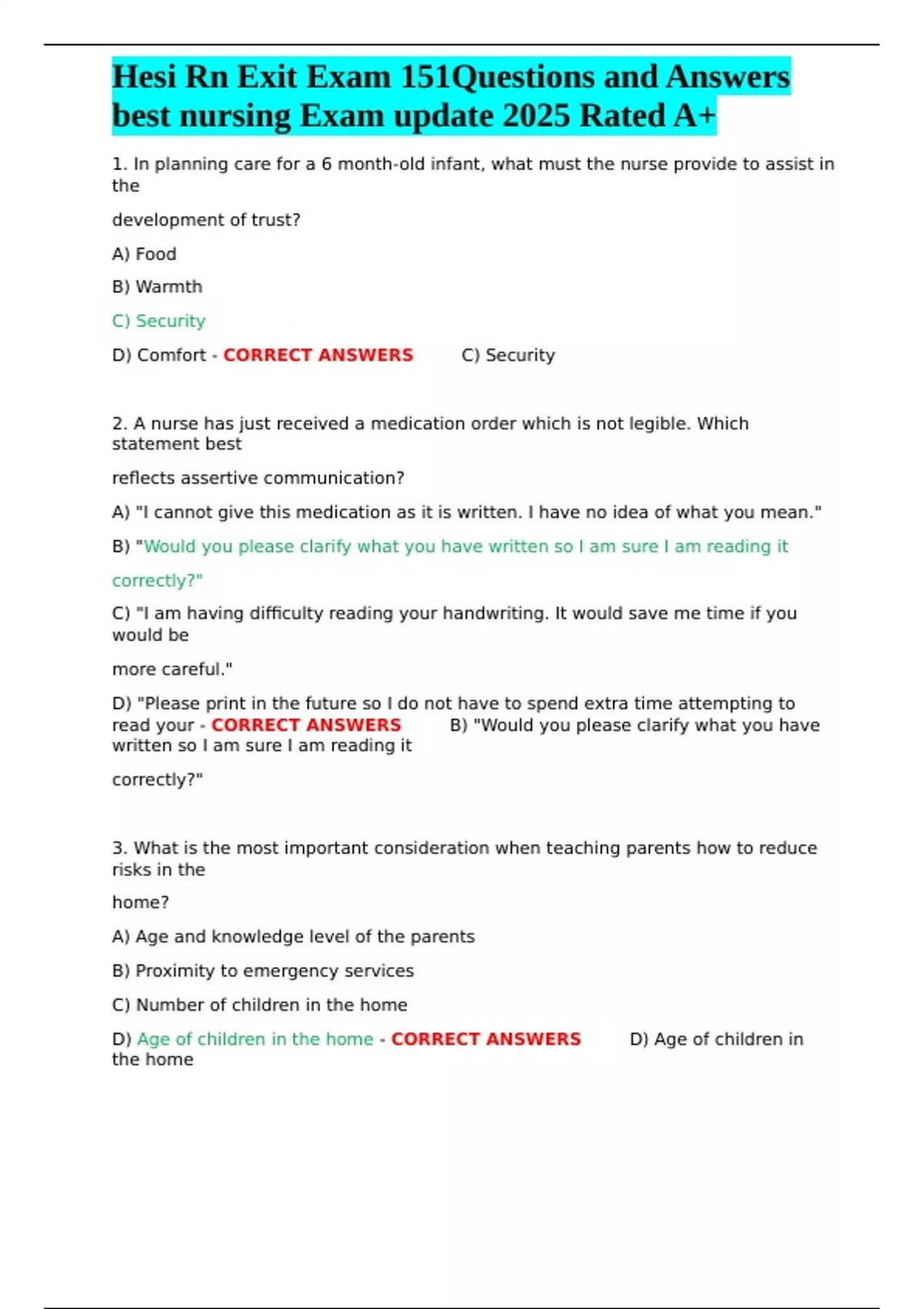 Hesi Rn Exit Exam 151Questions and Answers best nursing Exam update 2025 Rated A+