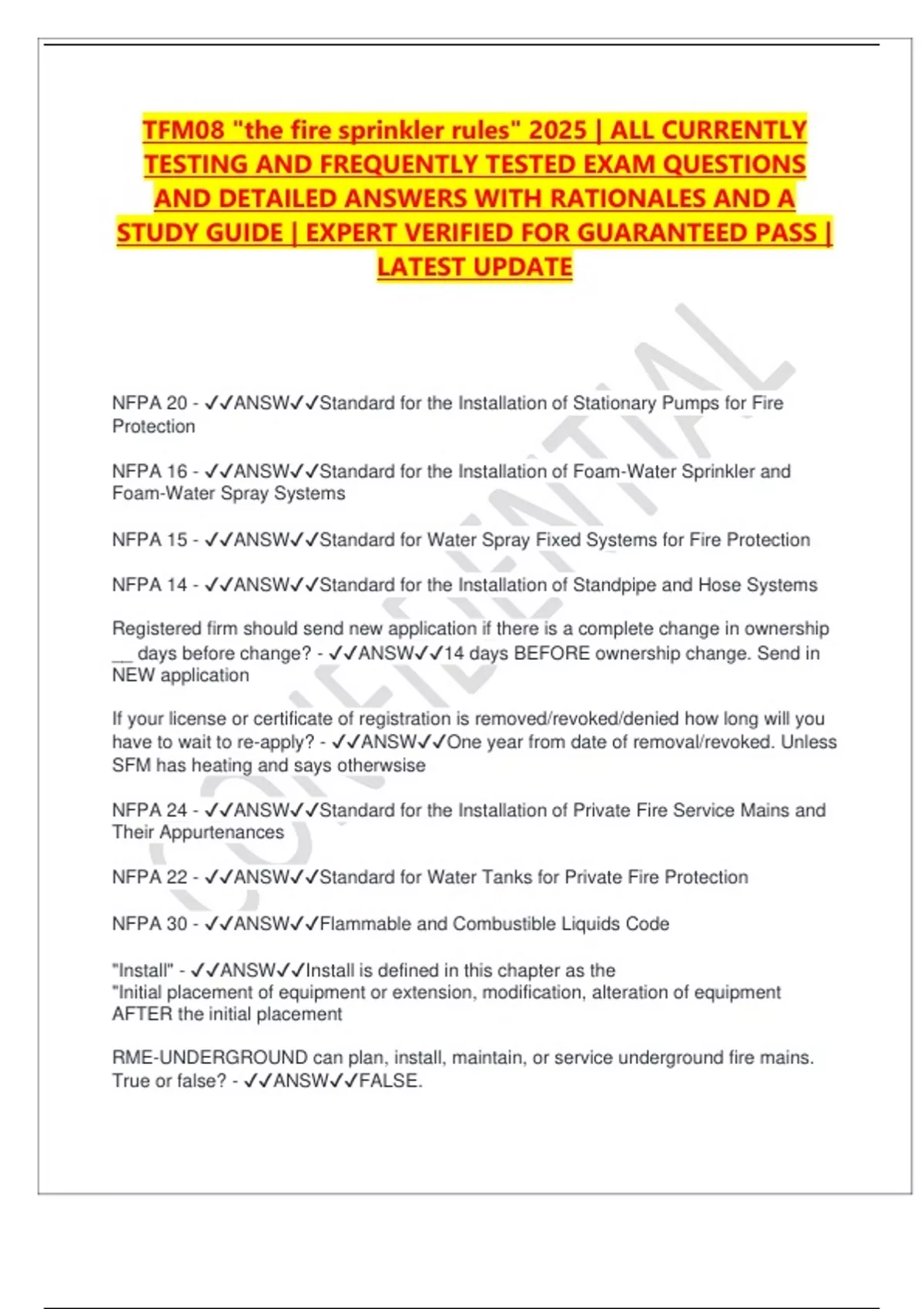 NFPA 16 - ✔✔ANSW✔✔Standard for the Installation of Foam-Water Sprinkler and